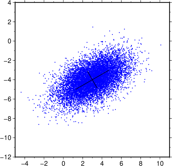 sigma_1 | ガウス分布の共分散行列の最大固有値の平方根\(\sigma_1(> 0)\)。 The square root of the largest principal value, \(\sigma_1 (> 0)\), of the covariance matrix of the Gaussian distribution. |